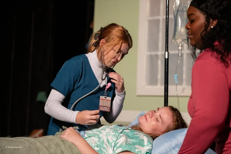 I was asked to design Stop Kiss by Diana Son only 3 weeks before opening night. 23 scenes bouncing back and forth in time to meet in the middle as the final scene. I designed Callie as a young fashionable woman coming from money but not obsessed with it. Sarah was softer and very feminine with fun colorful pieces. George is the funky bartender with fun colors in his personal wardrobe. Peter is soft and conservative in natural tones and soft textures. Mrs. Winsley is classy with old money silhouettes and jewel tones.